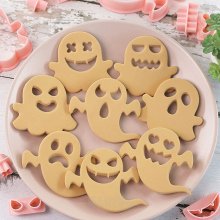 • 10-piece set of ghost-shaped cookie cutters and fondant embossers.