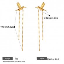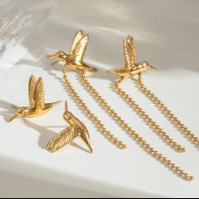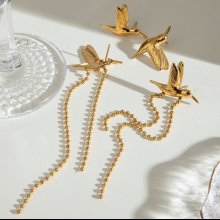Enhance your style with these beautiful 18K gold plated stainless steel peace dove bird tassel earrings, designed for the modern woman who values both simplicity and elegance. With their smooth, flowing tassels and graceful bird motif, these earrings make a statement without overwhelming your look. Perfect for special occasions like weddings, anniversaries, and parties, these earrings add a touch of class and sophistication to any outfit. The minimalist design ensures they complement both casual and formal attire, offering versatility in your jewelry collection.