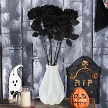 Transform your home or event with the striking beauty of our Black Silk Rose Artificial Flowers. This exquisite set of five faux roses brings a dramatic and sophisticated flair to any occasion, from Halloween parties to Christmas gatherings. Crafted from high-quality silk, these roses offer a dark and mysterious elegance that is perfect for adding a gothic touch to your decor.