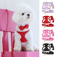 Bowtie Dog Collar Harness Leash Set – Durable Nylon Vest for Small & Medium Dogs