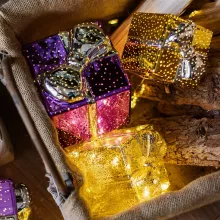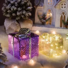 These glowing gift boxes are ideal for adding ambiance to holiday events, from family gatherings to holiday shopping centers. The soft LED lighting radiates through the glass, illuminating its beautiful design and creating a cozy, festive glow. Powered by easily accessible AAA or AA batteries (not included), you can place it anywhere without worrying about cords or outlets. Use it as a decorative accent for: