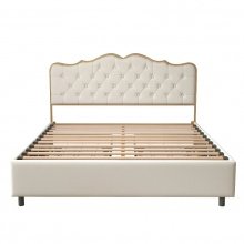 At the heart of this bed is its classic pull-button backrest, upholstered in high-quality, soft, and thick leather that invites you to relax in luxury. The backrest is generously filled with high-elastic sponge, providing unparalleled comfort and support. The bed’s frame, made from gilded steel pipe, offers robust stability, while the solid wood ribs ensure a soft yet strong foundation for restful sleep.