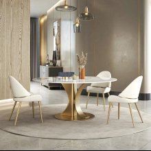 Transform your dining space into a bastion of luxury with our Marble Round Dining Table. Meticulously crafted for those who appreciate the finer things in life, this table is not just a piece of furniture, but a statement of sophistication. The resplendent gold stainless steel frame supports a majestic slate top, where every meal becomes a celebration. With its built-in turntable, this dining table promises to elevate your dining experience to a new level of convenience and style.